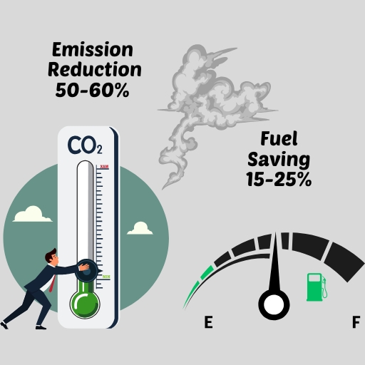 - A 20-30% reduction in NOx, SOx, and CO2 emissions.